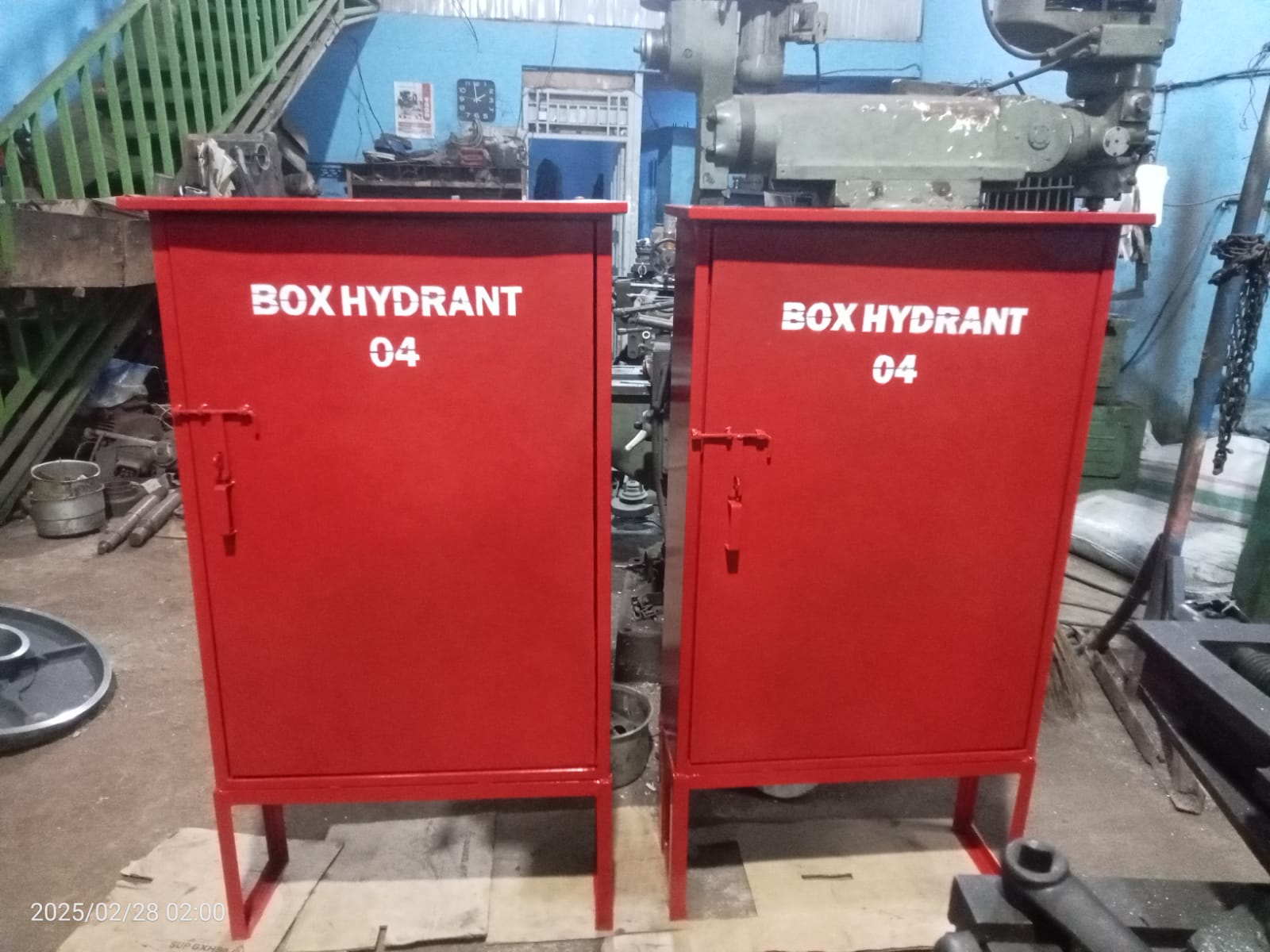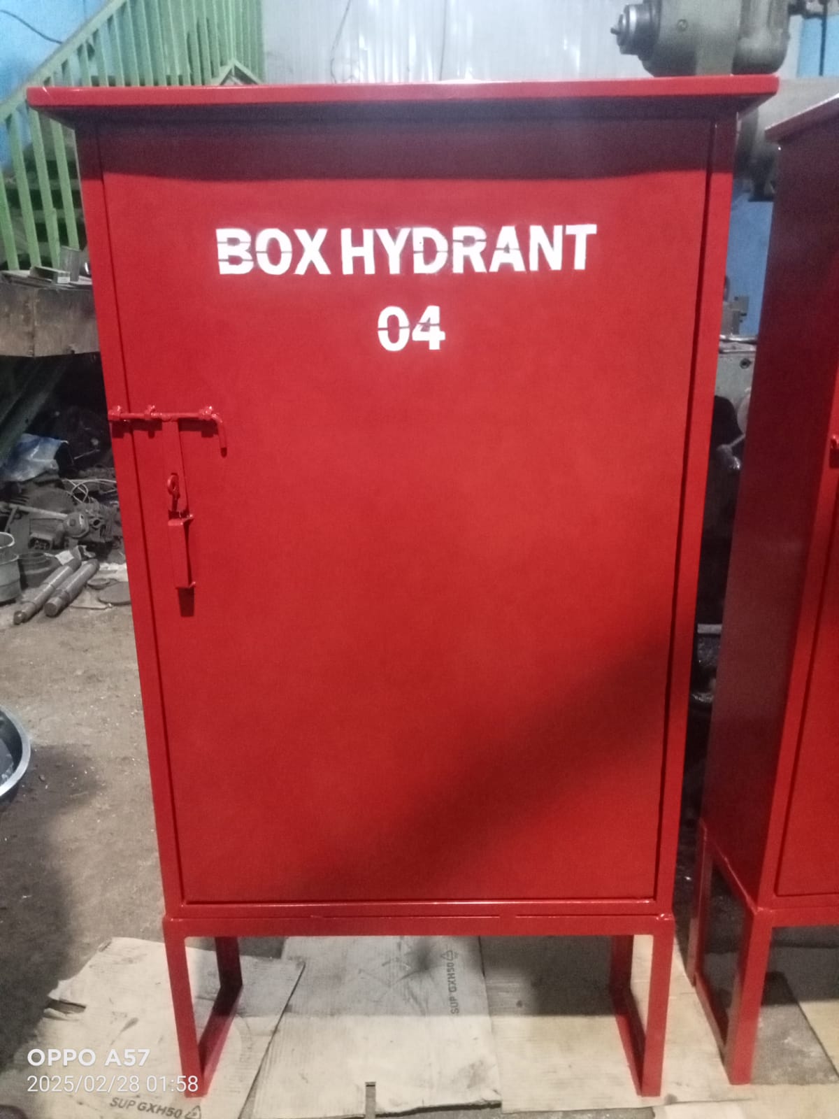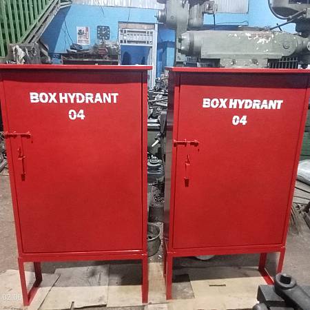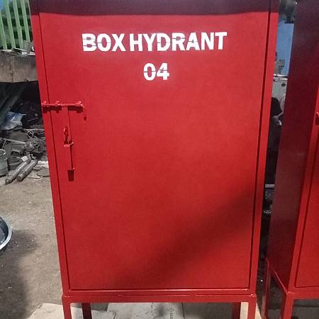 a glass window and key. It is able to store fire hydrant equipments neatly.